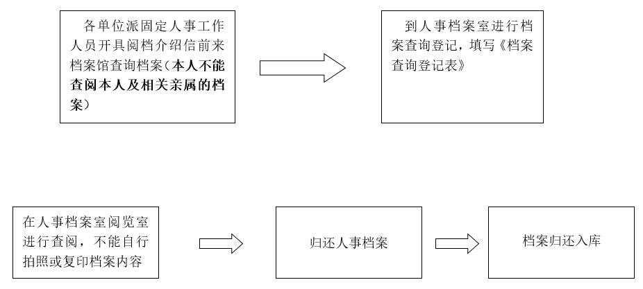 3.除人事、组织干部确因工作需要外,遵照查阅本单位职工、上级查下级、领导查群众的查阅原则,任何人不得查阅上级或本部门以外人员人事档案。