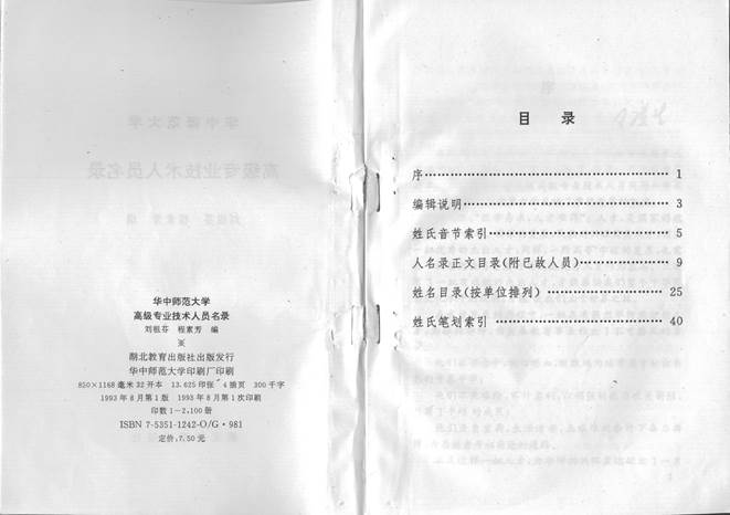 《华中师范大学高级专业技术人员名录》由华中师范大学档案馆编辑,湖北教育出版社1993年出版。