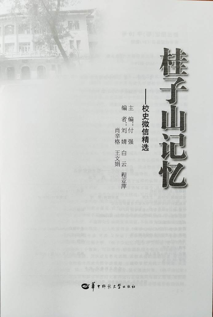 《桂子山记忆——校史微信精选》由华中师范大学出版社2019年4月出版,是全国高校首部微信原创精品专著。