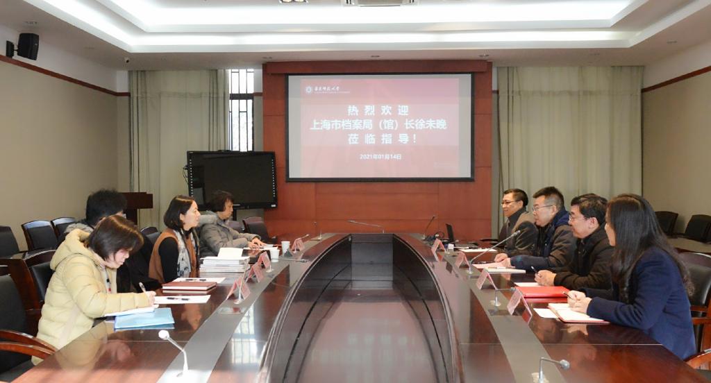 2021年1月14日上午,上海市档案馆局(馆)长徐未晚一行来华东师大调研,副校长孙真荣出席调研会并致欢迎词。