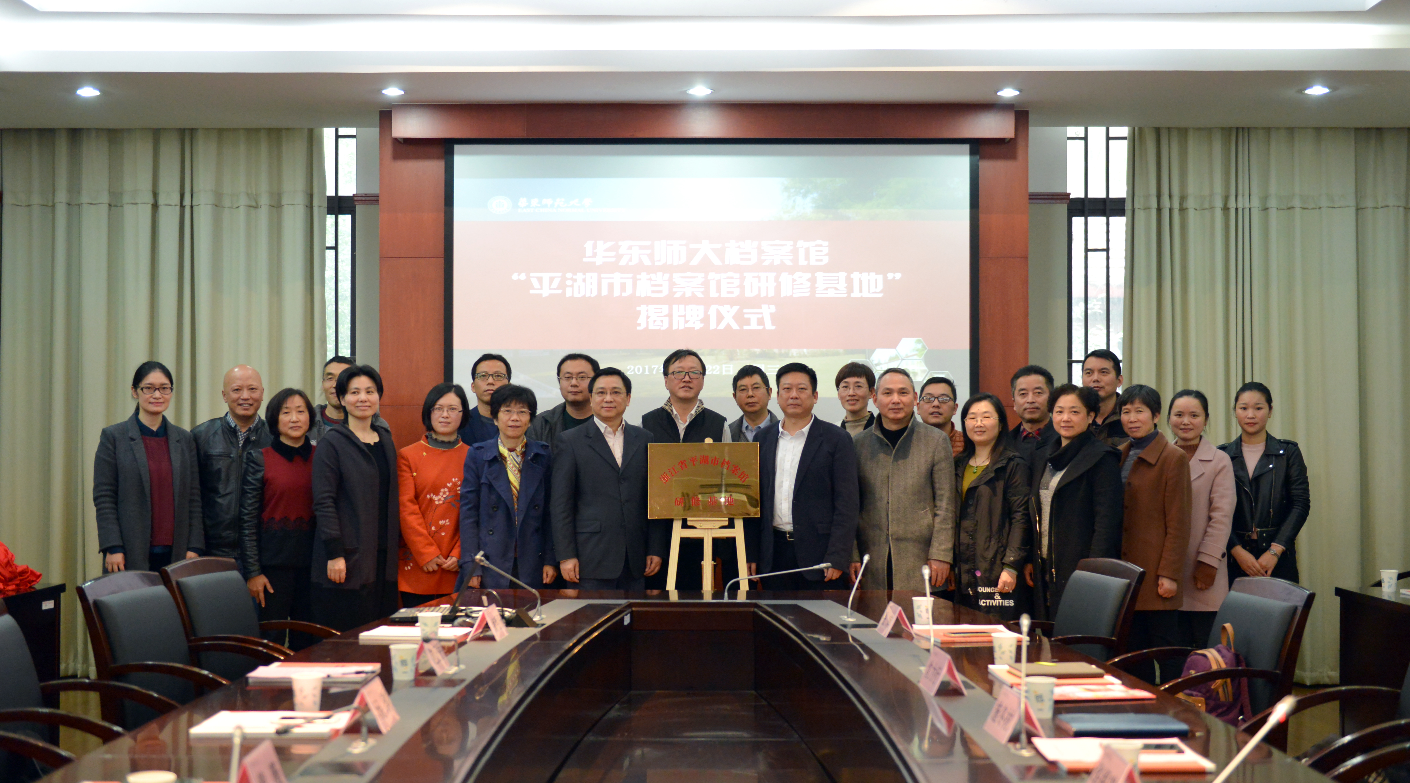 2017年11月22日上午,“平湖市档案馆研修基地”揭牌仪式在华东师大档案馆顺利举行。华东师大档案馆馆长汤涛、平湖市副市长施冬材、平湖市档案局(馆)长沈力行、华东师大政治学系党委书记赵正桥、对外汉语学院党委书记黄薇出席仪式。仪式由华东师大档案馆副馆长魏明扬主持。