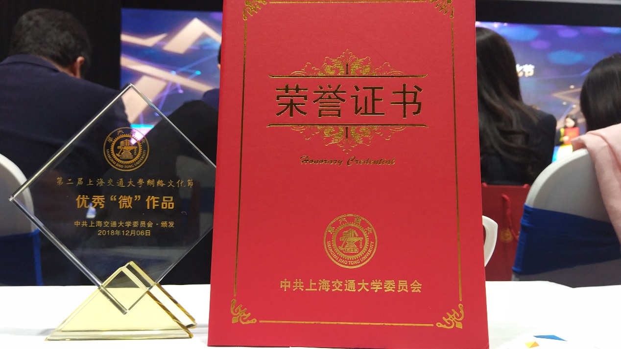 12月6日,第二届上海交通大学网络文化节闭幕式举办。本届网络文化节活动开展5个月以来,共收到604件作品,其中档案馆(党史校史研究室)报送的《档案漂流记》系列动画短片之“同学,你的成绩单”入围教师组优秀“微”作品奖,并代表交大优秀网络作品报送教育部。