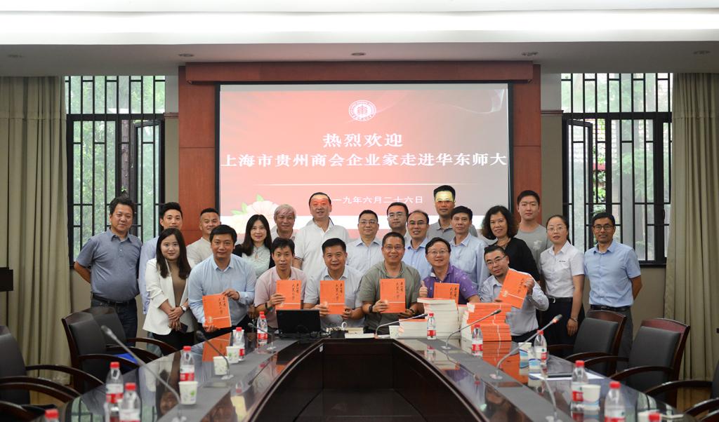 孙真荣会见邓匡林会长率领的“上海市贵州商会走进华东师大”活动企业家一行。他对来访的商会一行表示热烈欢迎。他指出,华东师大和贵州有着深厚的历史渊源,华东师大前身大夏大学由贵州兴义人王伯群创办。抗战时期,大夏大学辗转迁至贵阳、赤水等地,得到贵州人民的极大支持和帮助。华东师大人对贵州怀有深厚的感情,今年1月,华东师大与贵州省政府签订战略合作协议,双方将本着“优势互补、互利共赢、务实合作、共同发展”的原则,在教育综合改革、合作办学、人才培养等领域开展战略性合作,助推贵州脱贫攻坚和三大战略行动。他希望今后上海市贵州商会能经常到华东师大交流指导。