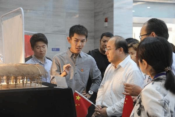 环设71班王彦清同学对此次参展的11件主题鲜明、内容生动、时代感强的艺术设计类作品作了简要介绍。他以自己的作品为例,向大家阐述了艺术与家国情怀的关联,“在创作过程中,我才真真切切领悟到了什么叫做西迁精神”。此外还有很多优秀的作品也在传递着关于祖国及交大的种种故事、情感及意义,如环设71班穆芊润、樊荣同学的作品《饮水思源》,由中国古代榫卯结构演变成为拼插结构、运用科技创新手段进行模型搭建和激光雕刻,生动展现了饮水思源的本质和交大艰苦创业的精神。