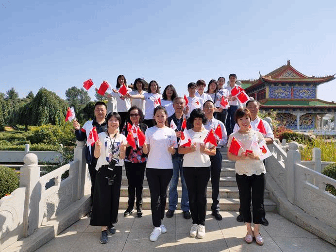2019年9月30日东北大学档案馆赴沈阳三农博览园组织开展“不忘初心、牢记使命”主题教育学习。安静的广场上,一曲优美的旋律划破宁静),全体东北大学档案馆人伴随《我和我的祖国》这熟悉而又激昂的旋律,挥舞着手中的国旗,缓缓汇聚在一起,深情演绎祖国赞歌。歌声落地,全场掌声雷动,全体员工发自肺腑的高呼“爱我中华祝祖国母亲70华诞生日快乐”!红旗飘飘与灿烂笑脸辉映,歌声琅琅与秋风共鸣,将本次活动推向高潮。