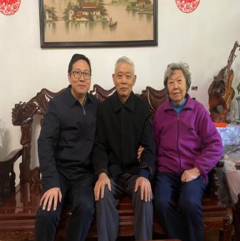 慰问白调玉老师(右一)及其爱人 慰问刘祖芬老师(中) 慰问郭联群老师(右)