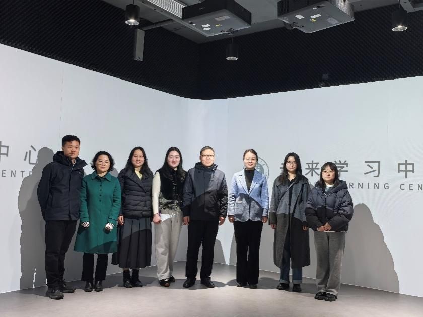 学习活动首先抵达学校图书馆四楼刚建成的未来学习中心,实地察看开放式学习阅览区、多元化研讨空间及特色功能区域,详细询问了空间规划、功能布局及运营管理模式,翻阅《民国教育史料丛刊》等的编撰情况,与图书馆相关人员进行教育教学史料编研现场研讨。考察团实地体验学习中心AI微格教室虚拟仿真教学情况、演播室建设情况、270度智能学习场景应用情况,体验《天工开物》等虚拟仿真实景式科普教育情况。前往图书馆八楼,参观古籍特藏阅览室校史相关史料,考察古籍修复工作,观摩古籍修复流程与技艺,探讨珍贵档案修复合作模式。