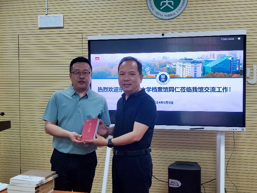 付强馆长首先向东北师范大学档案馆赠送了华中师范大学近些年的编研成果。