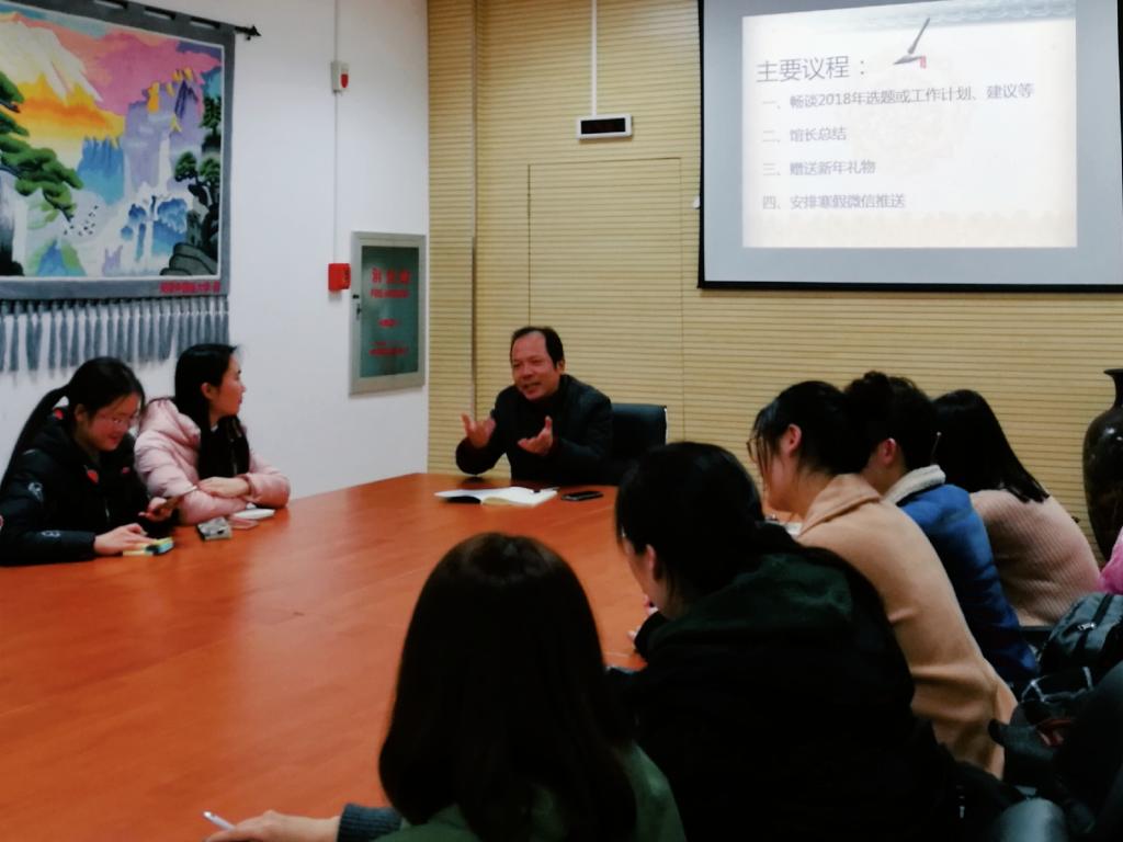傅强馆长感谢新媒体团队所有成员的付出,希望新的一年团队继续向上生长,充分整合现有馆藏资源,积极征集潜在档案史料,建立新媒体品牌形象。他还建议原创精品选题围绕学校“双一流”建设、“大师成长史”、历史上的校区、桂子山记忆等展开,在合适的时间节点推送合适的人、事、物,鼓励大家关注华东师大、天津大学、中南财大等兄弟高校微信公众号,博采众长,推进新媒体建设更上一层楼。