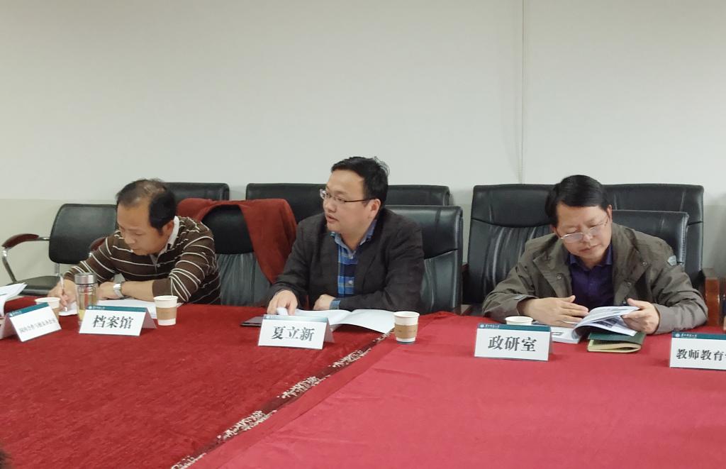 2018年4月25日下午,新校史馆文稿“世纪华章”部分审稿会在行政楼四楼会议室召开,夏立新副校长出席并主持会议,参加会议的有政策法规研究室、党委组织部、党委宣传部、发展规划处、人事处、教务处、科研部、研究生院、国际合作与交流处、信息化办公室、国内合作与校友办公室、教师教育学院、档案馆等部门主要负责人。