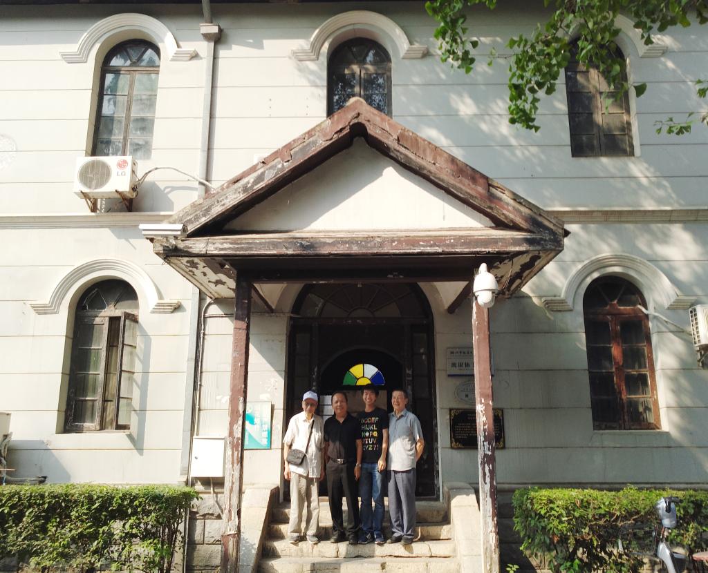 一行人到湖北中医药大学校园内,依次寻找到文华大学(我校前身)圣诞堂、神学院、博育室(理学院)、文学院、翟雅阁健身所等。当年的建筑依旧保留原样,除内部稍作修缮后,其外部结构与原来一样,我们仿佛看到了文华大学和华中大学师生教书求学的身影。