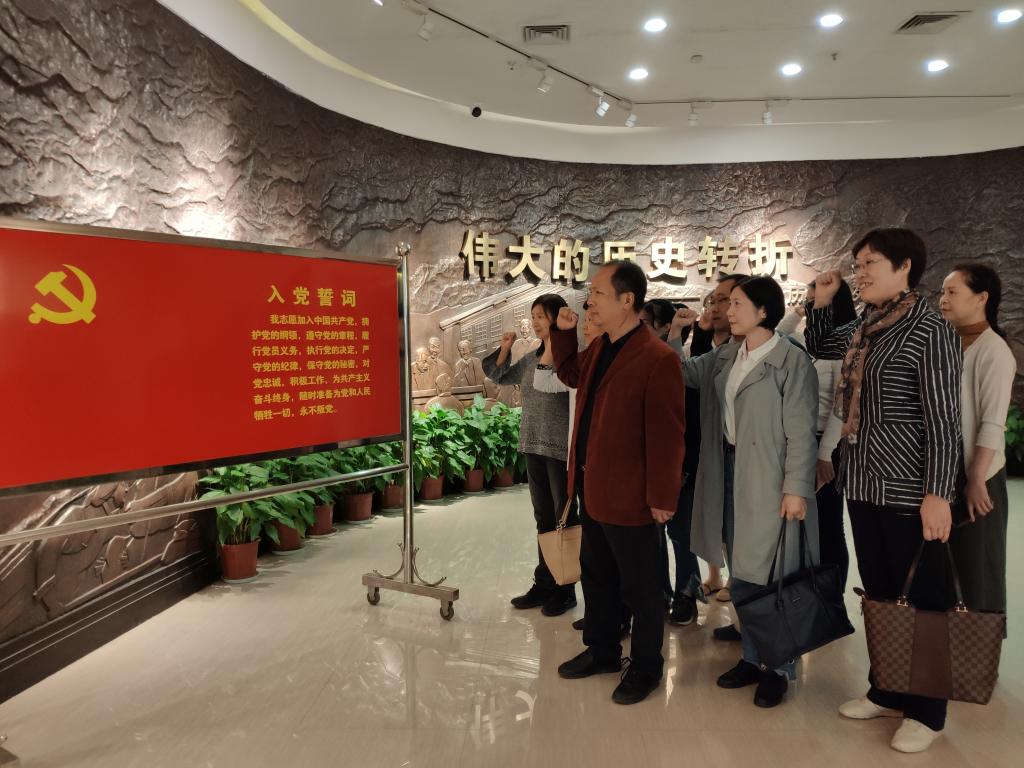 一入展厅,支部成员自发地在入党誓词前庄严宣誓,在红色场地宣誓,党员们的责任感和自豪感更加强烈。进入展厅支部党员们认真聆听专业讲解,参观了纪念馆展出的300多件文物、照片和珍贵历史资料,重温了八七会议的历史,缅怀了革命先烈壮美情怀,进一步坚定了共产主义理想和中国特色社会主义信念。