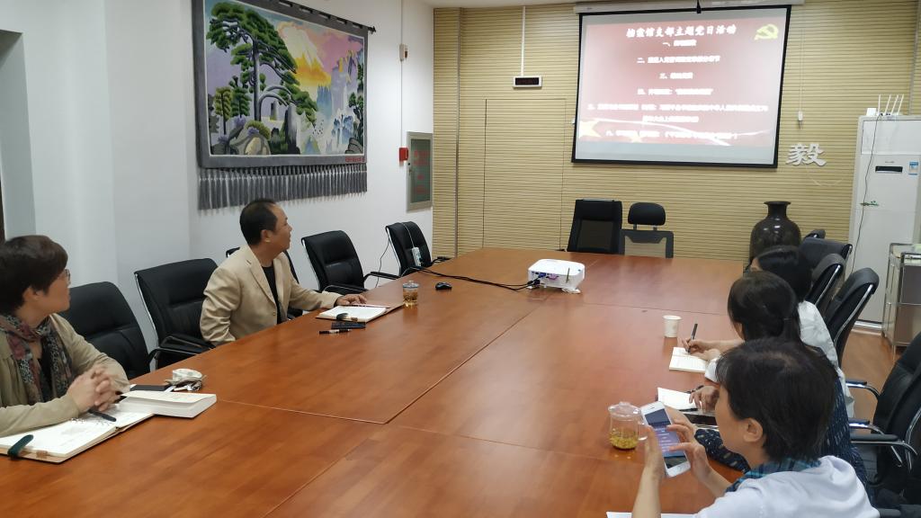 2019年10月14日下午,档案馆支部开展主题党日活动,全体党员齐聚会议室,活动由支部书记付强主持。