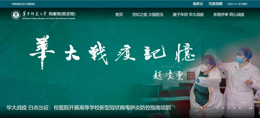 2020年12月30日,“建构战疫记忆呈现苦难辉煌”——“华大战疫记忆”专题展在我校防控疫情专题网站正式上线。该展览集中展示了疫情期间我校师生、校友和社会各界人士在战疫工作和志愿活动中形成的图文、视频、实物档案和创作作品,全方位再现了“华大战疫记忆”。