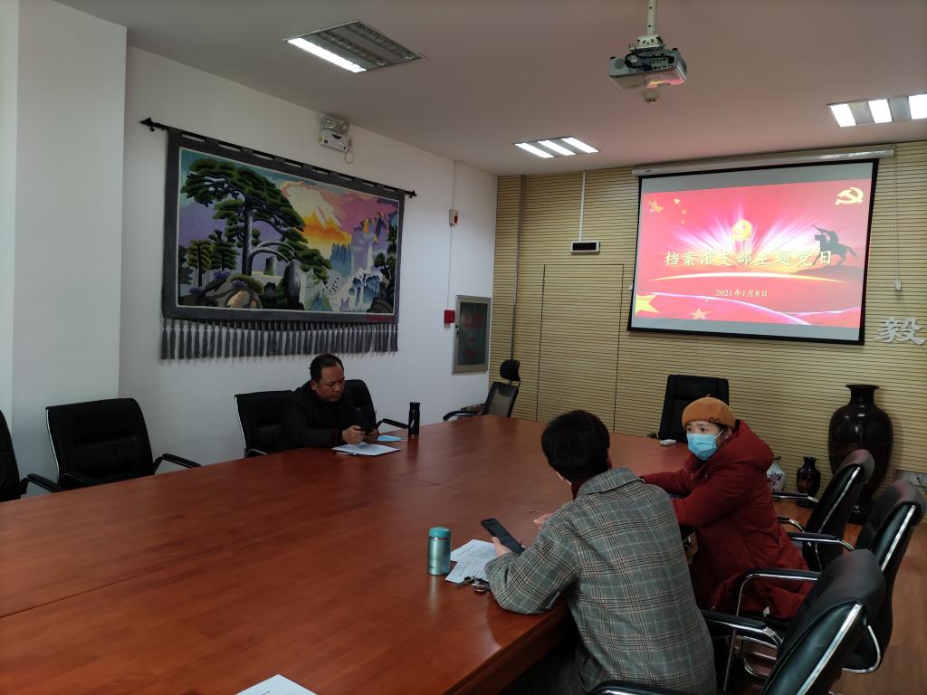 2021年1月8日,档案馆支部组织主题党日活动,活动由支部书记付强主持,全体党员齐聚会议室,奏唱《国际歌》,重温入党誓词。