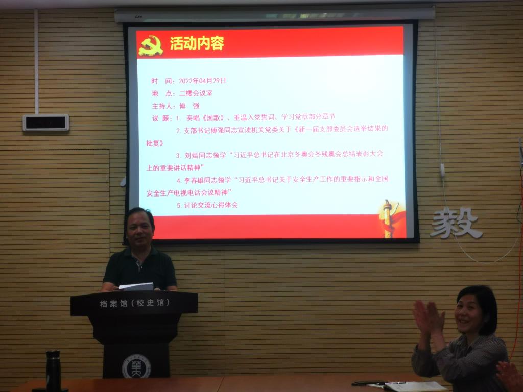 2022年4月29日,档案馆支部在会议室二楼组织召开了4月主题党日活动,会议由支部书记付强同志主持,主要有5项议题。