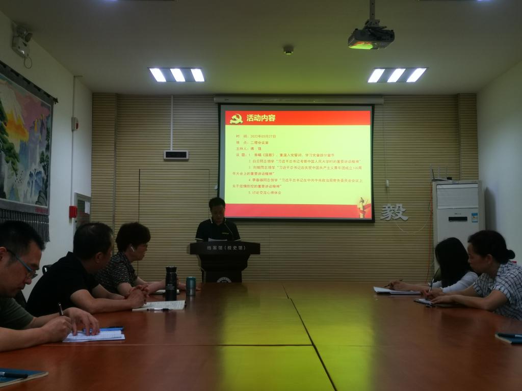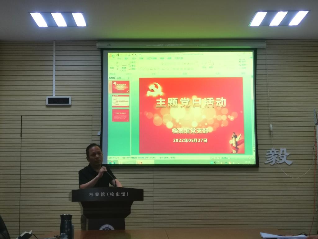 2022年5月27日,档案馆支部在会议室二楼组织召开了5月主题党日活动,会议由支部书记付强同志主持,主要有5项议题。