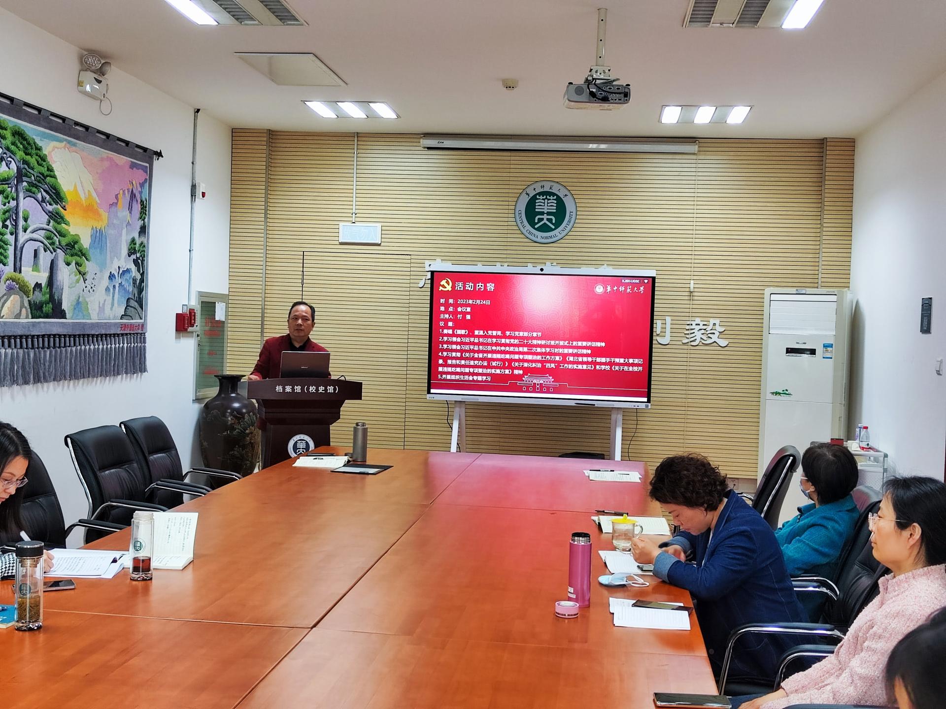 2023年2月24日,档案馆支部在会议室开展2月份支部主题党日活动。会议由支部书记付强主持,支部全体党员参加。