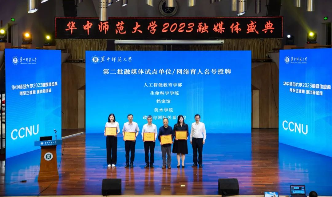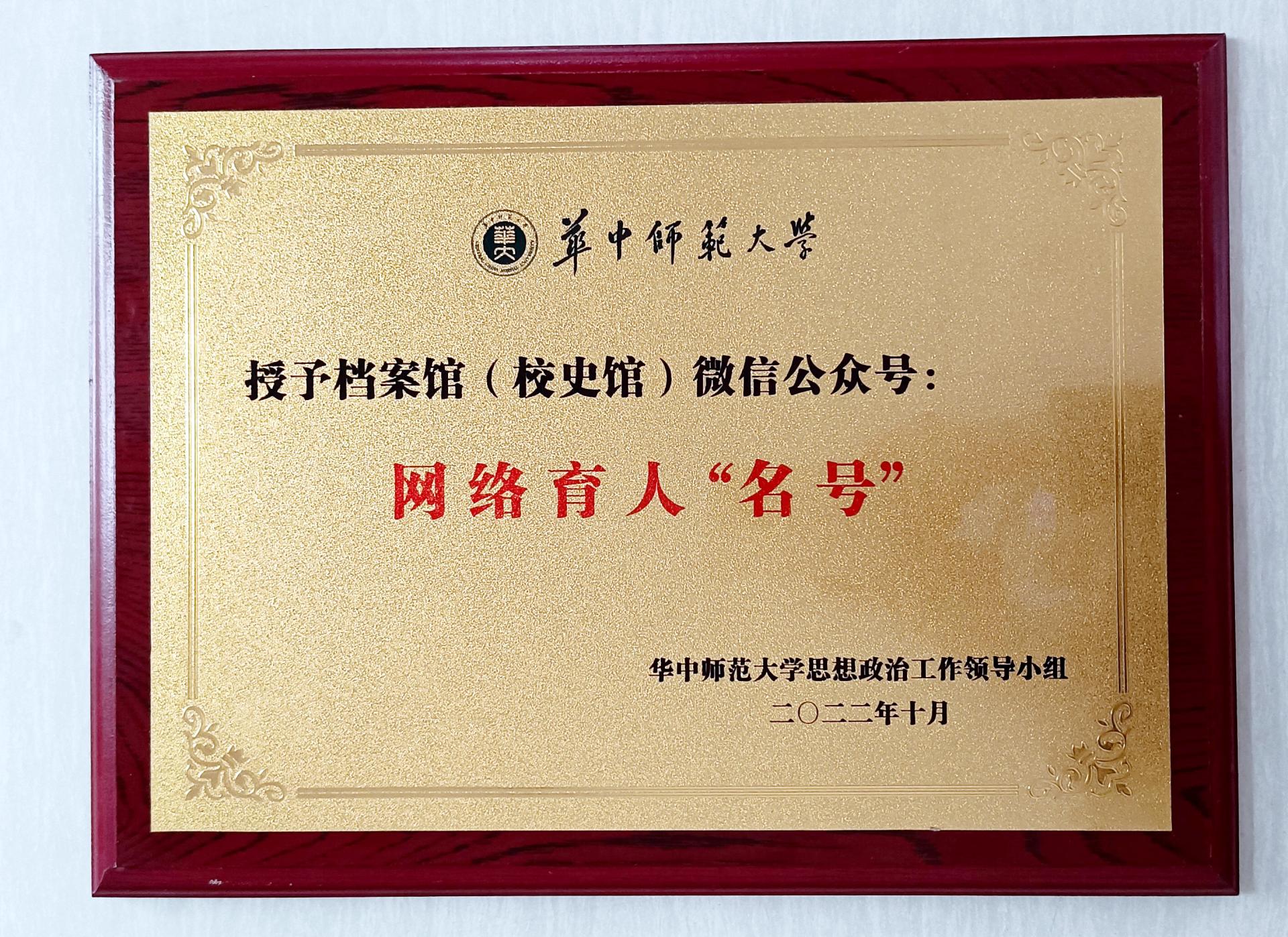 盛典为第二批融媒体试点单位、网络育人名号授牌,“华中师范大学校史馆”微信公众号入选“时代新人培育工程专项支持计划”名号项目,付强馆长代表档案馆(校史馆)上台接受“名号”授牌。