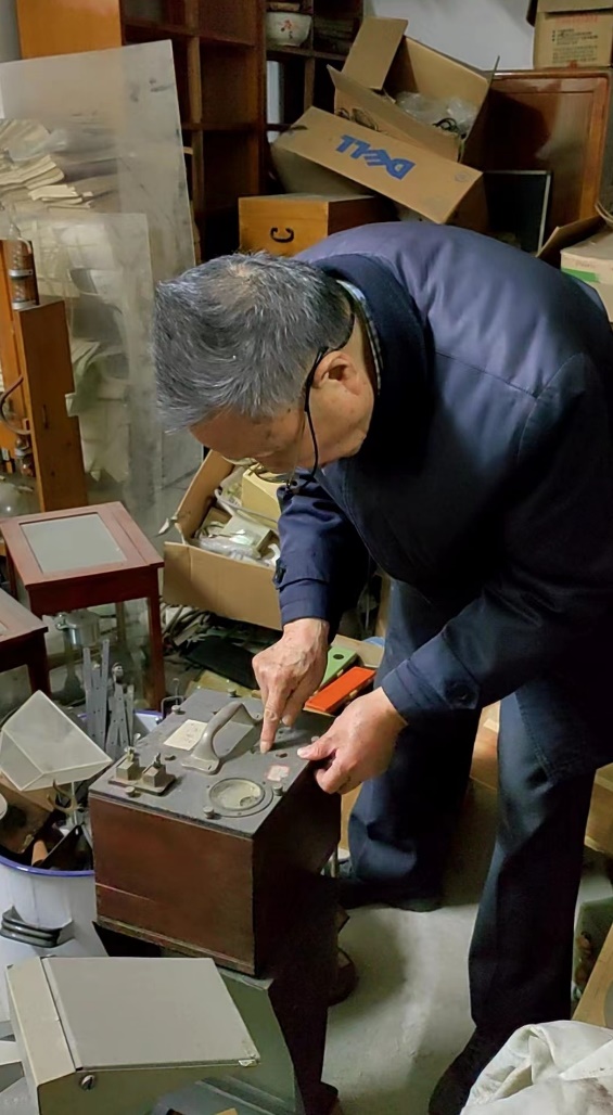 在这次档案征集中,档案馆三位老师与李教授一起前往物理学院,在九号教学楼负二楼布满灰尘的仓库中,一件一件查找,由李教授逐件进行辨认,经过几个小时的连续工作,将保存较为完好且颇具珍藏价值的实验仪器甄选出来,送往校史馆进行清洁、擦拭,并邀请李来政教授和李谟介教授一同进行了二次辨认,为其贴好标签。此次征集到了私立华中大学、华中高等师范学校以及华中师范学院等我校不同时期的实验仪器如灵敏电流器、交直流电子伏特计、多档输出变压器等共计66件。这批实物档案生动再现了我校各个时期的办学场景,蕴藏着深厚的历史底蕴,填补了档案馆相关实物档案的历史空白,为桂子山档案记忆增添了浓墨重彩的一笔。