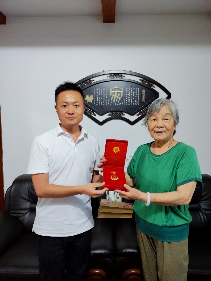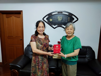 在中国共产党建党102周年到来之际,近日,档案馆支部为老党员颁发“光荣在党50年”纪念章。支部书记付强委托组织委员李春雄和老年协会档案馆分会会长刘祖芬老师专程慰问王莉华老师并颁发了纪念章,并详细询问她的身体和生活情况,送上组织对她的关爱。