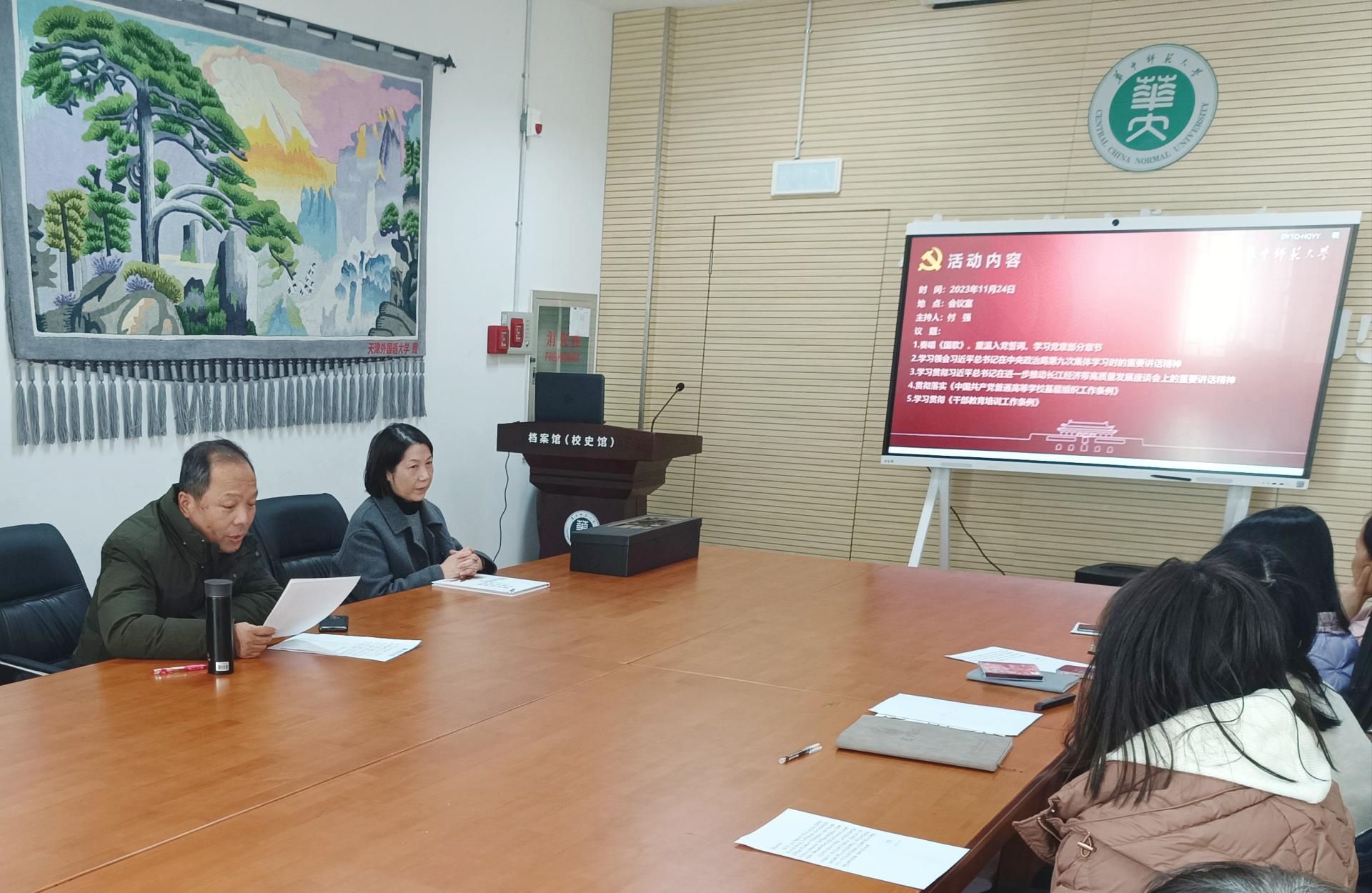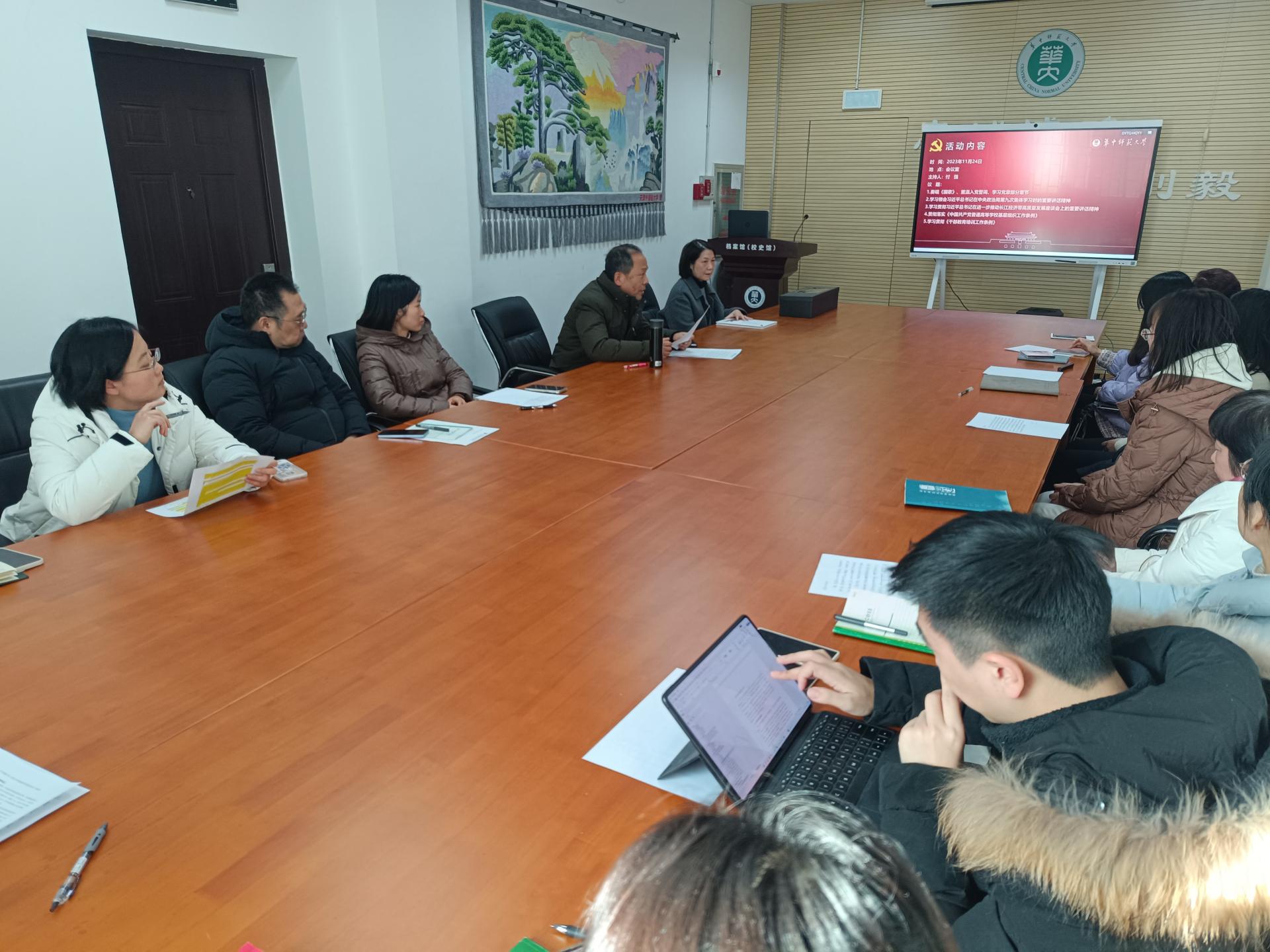 此次党日活动主要有四项议程。首先,由支部书记带领全体党员奏唱《国际歌》,重温入党誓词,学习党章部分章节。第二,由支部书记付强带头学习领会习近平总书记在中央政治局第九次集体学习时的重要讲话精神,深刻认识铸牢中华民族共同体意识的历史必然性,总书记的重要讲话,是对党的民族理论与时俱进的创新发展,是马克思主义民族理论中国化的最新成果,为我们进一步做好民族工作提供了根本遵循。第三,由支部委员白云带头学习习近平总书记在进一步推动长江经济带高质量发展座谈会上的重要讲话精神。第四,由支部委员李春雄领学《中国共产党普通高等学校基层组织工作条例》,从修订的背景和意义、修订内容、贯彻落实的具体要求等方面阐述。第五,由支部委员刘婧领学新修订的《干部教育培训工作条例》。