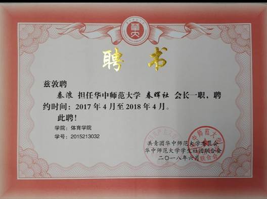 “春晖社会长”聘书